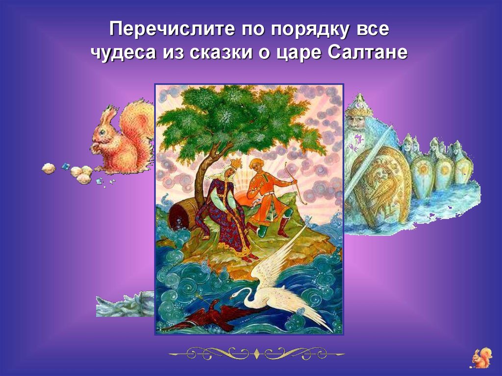 Перечислите по порядку всечудеса из сказки о царе Салтане