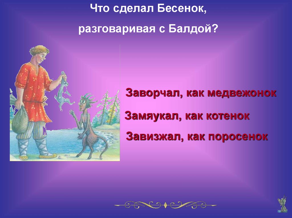 Что сделал Бесенок,разговаривая с Балдой?