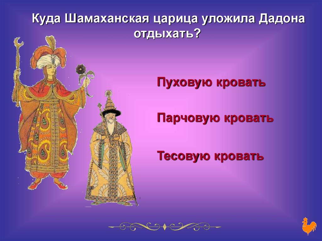 Куда Шамаханская царица уложила Дадонаотдыхать?