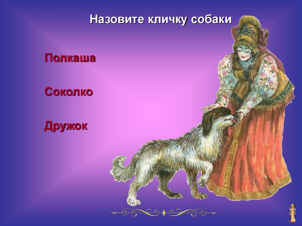 Назовите кличку собакиПолкаша