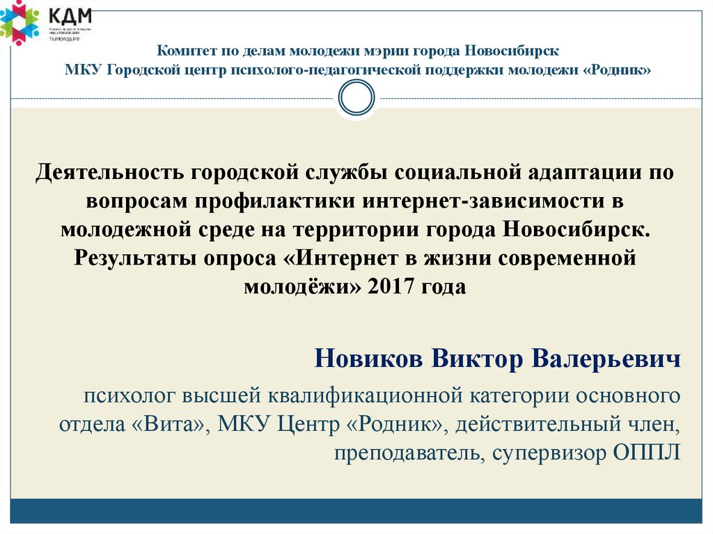 1. Комитет по делам молодежи мэрии города Новосибирск МКУ Городской центр психолого-педагогической поддержки молодежи «Родник»