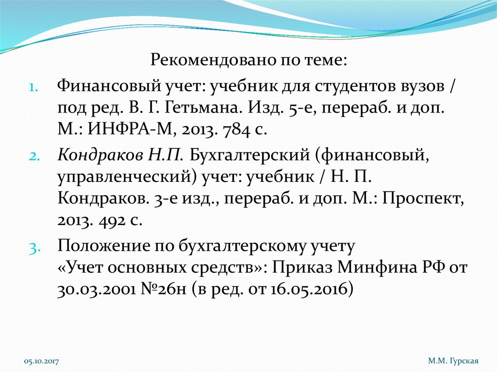 Рекомендовано по теме:1. Финансовый учет: учебник для студентов вузов /