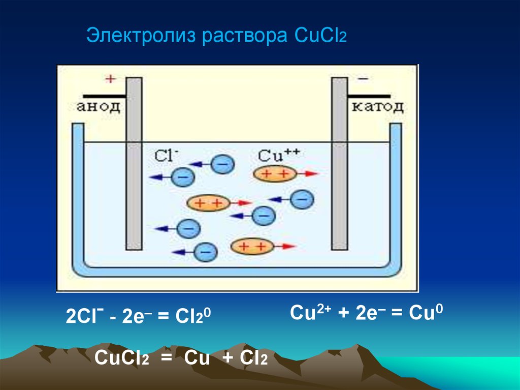 Электролиз раствора CuCl22Clˉ - 2e– = Cl20