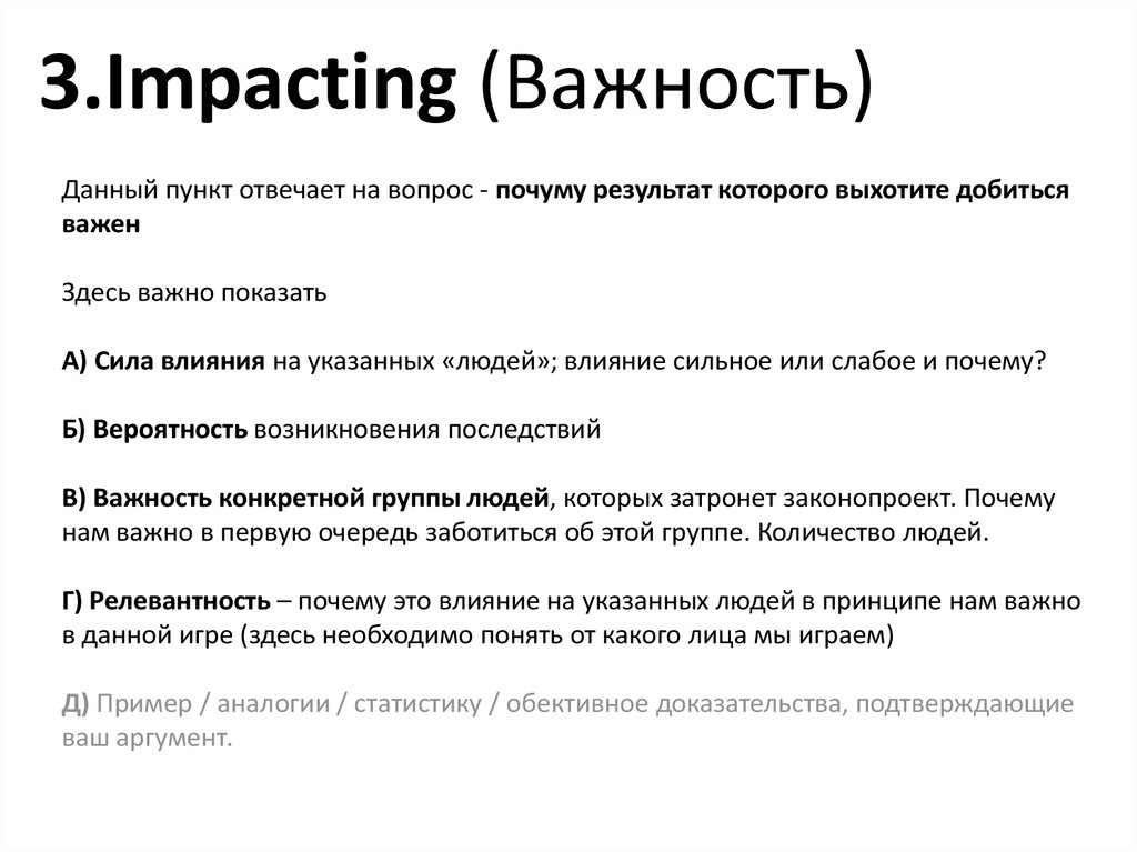 3.Impacting (Важность)Данный пункт отвечает на вопрос - почуму результат которого выхотите добиться