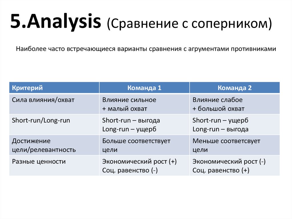 5.Analysis (Сравнение c соперником)Наиболее часто встречающиеся варианты сравнения с агрументами противниками