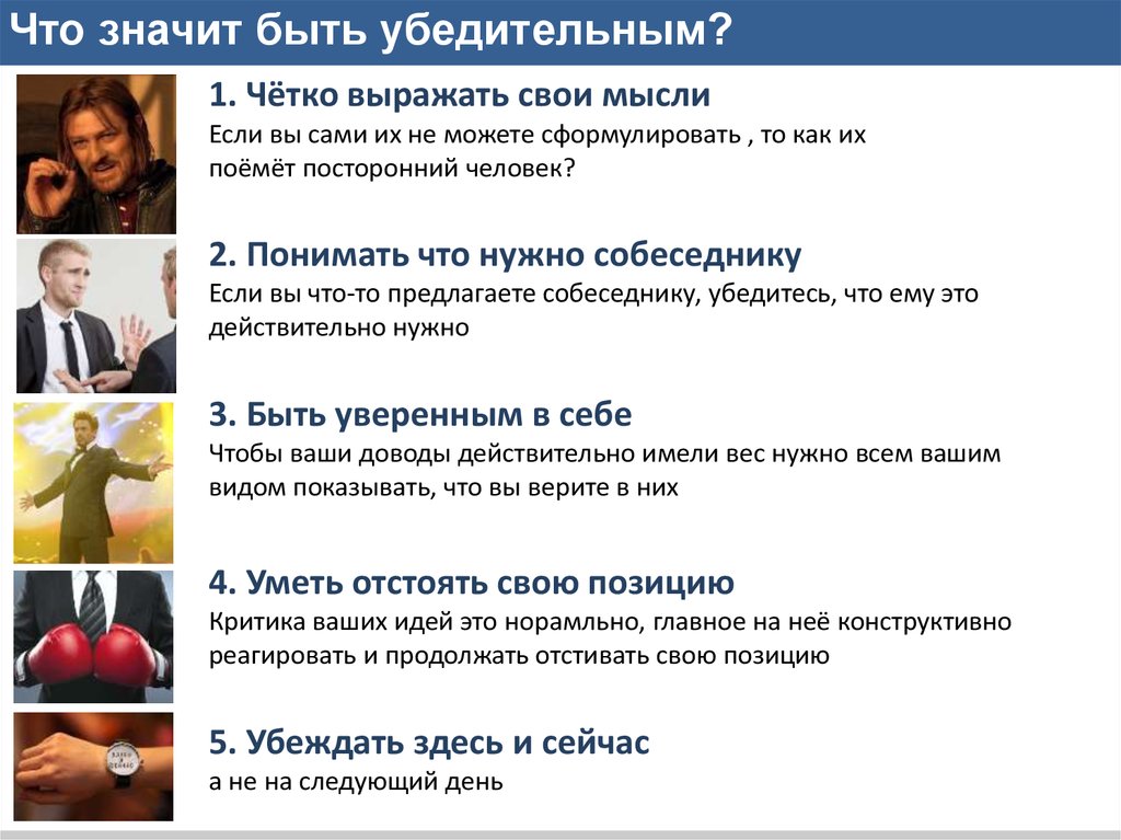 Что значит быть убедительным?1. Чётко выражать свои мысли