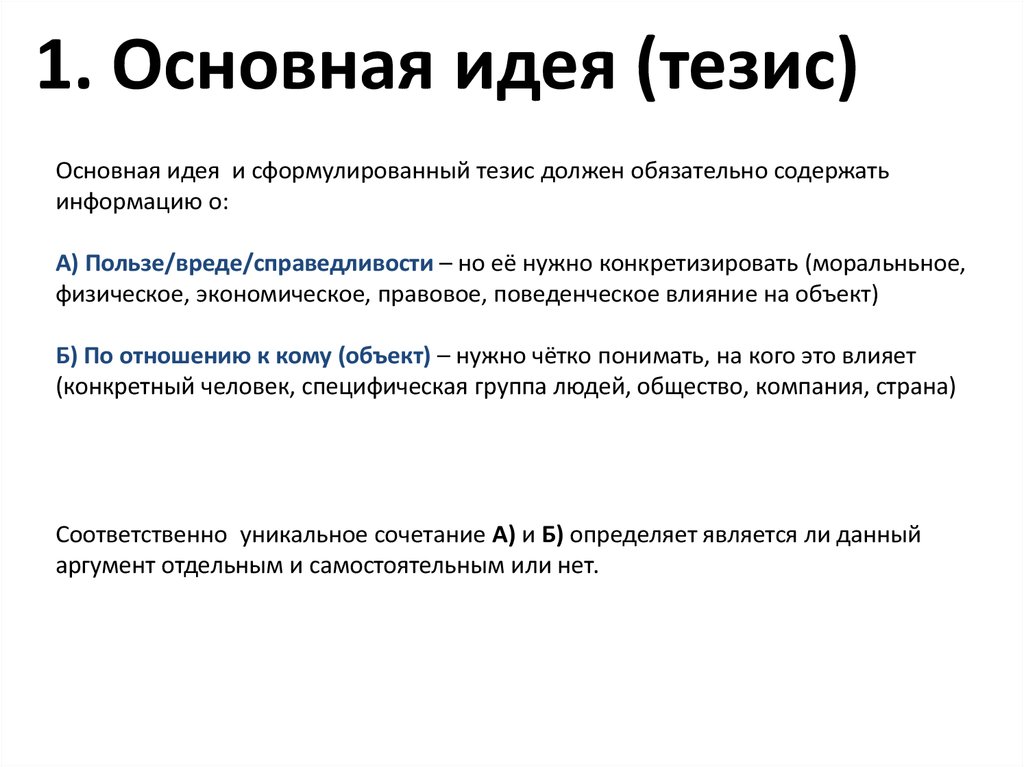 1. Основная идея (тезис)Основная идея и сформулированный тезис должен обязательно содержать