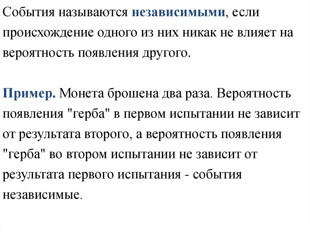 События называются независимыми, еслипроисхождение одного из них никак не влияет на
