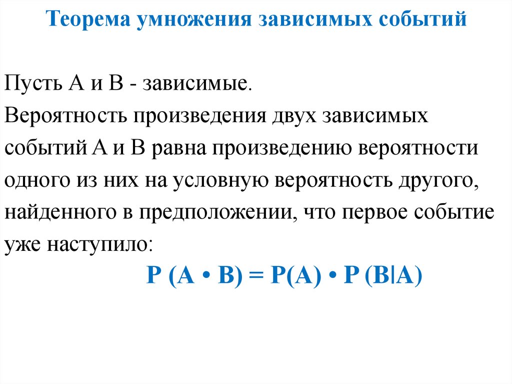 События наз. зависимыми, если наступлениеодного из них изменяет вероятность появления