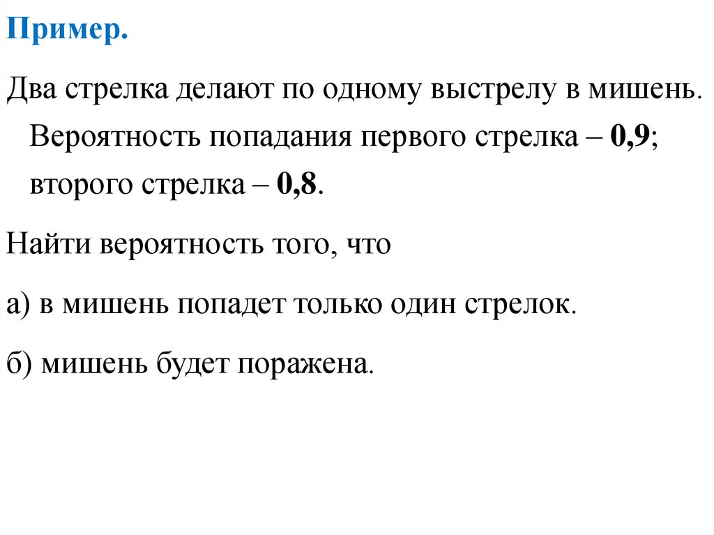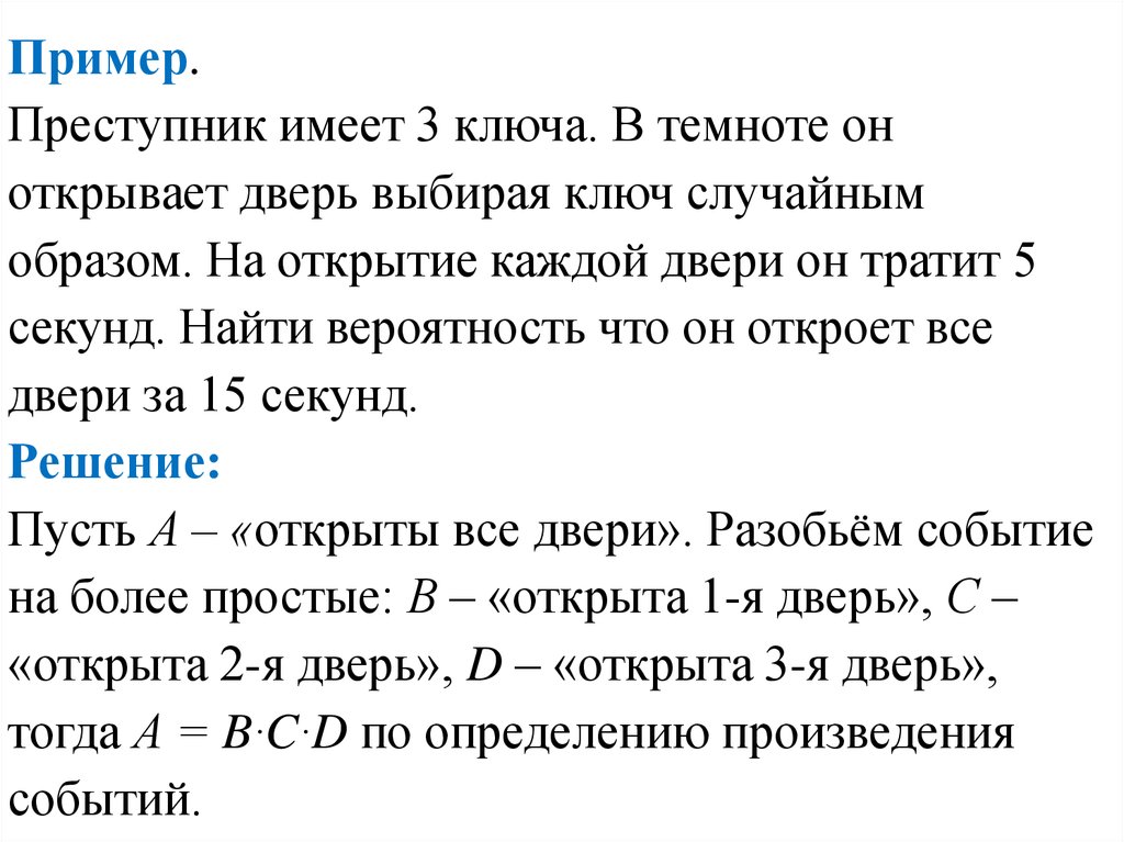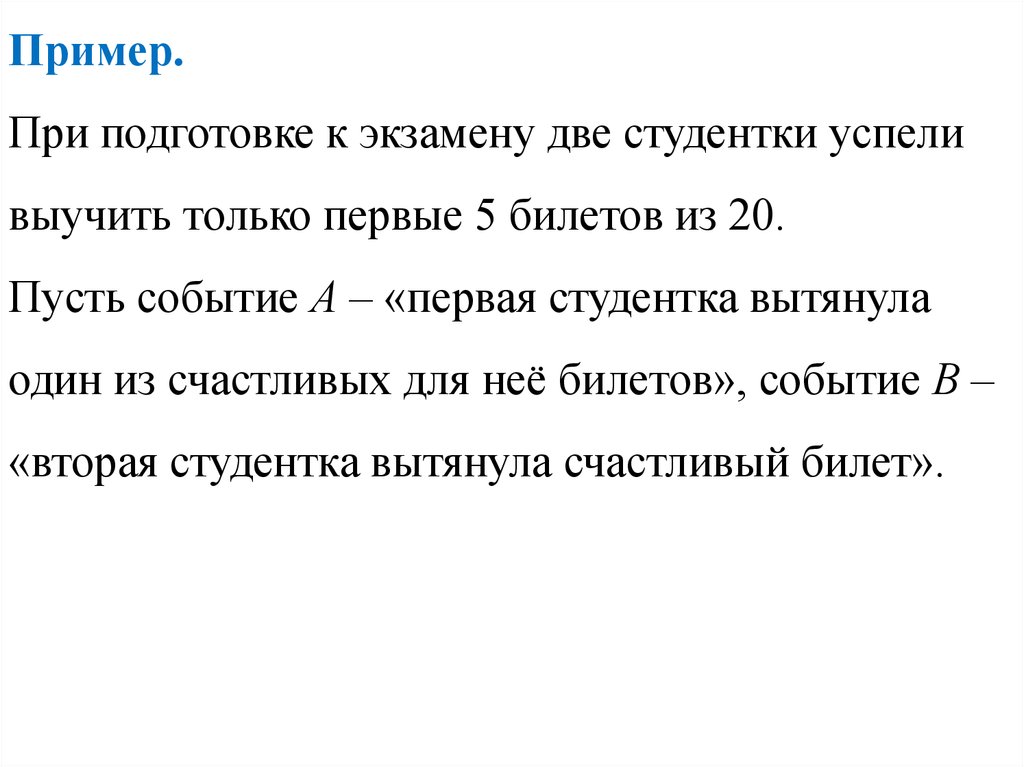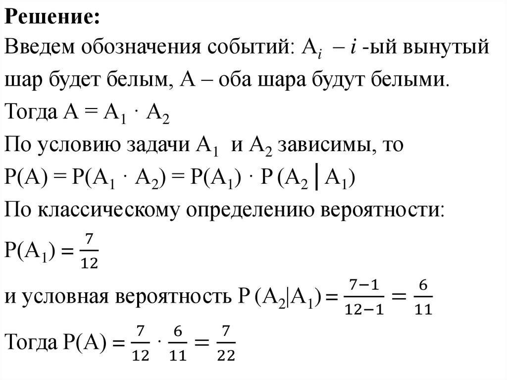 Пример: В ящике находятся 5 шаров: 2 чёрных и 3белых. Производится 2 последовательных