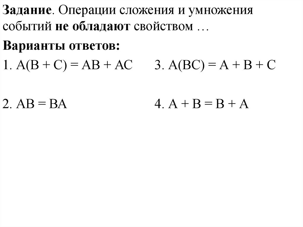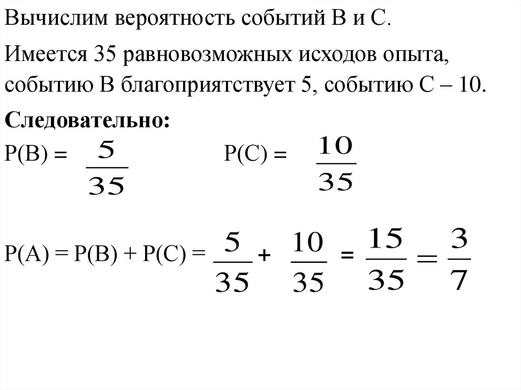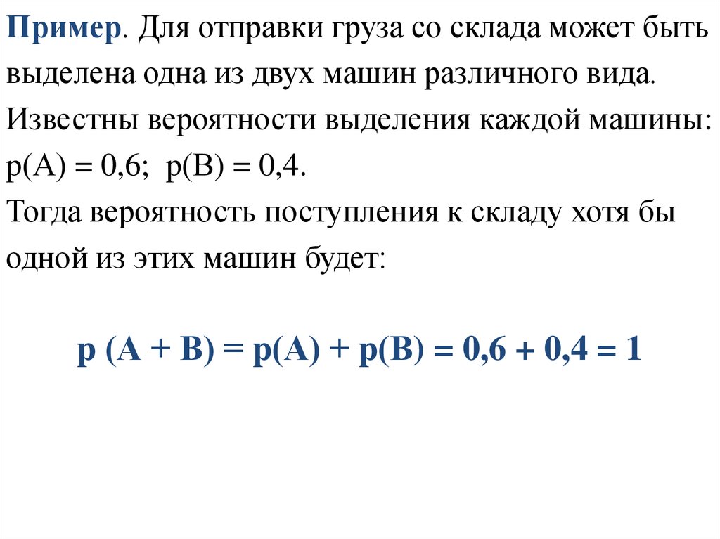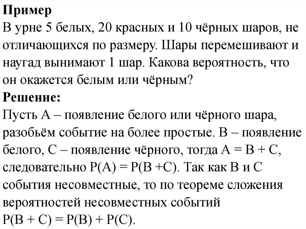Теорема сложения несовместных событийВероятность суммы 2-х несовместных событий