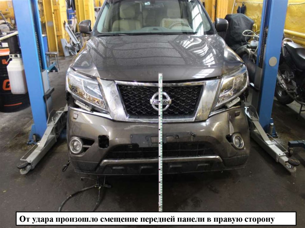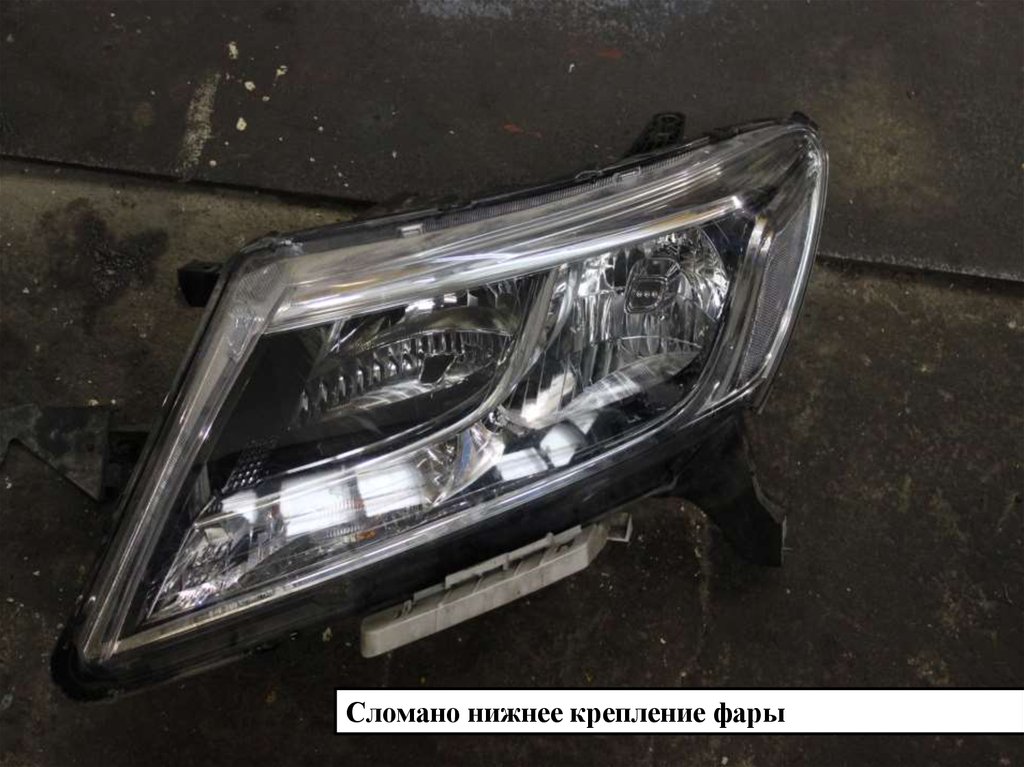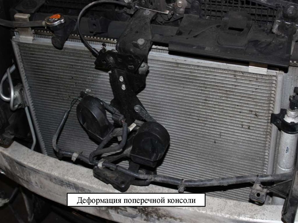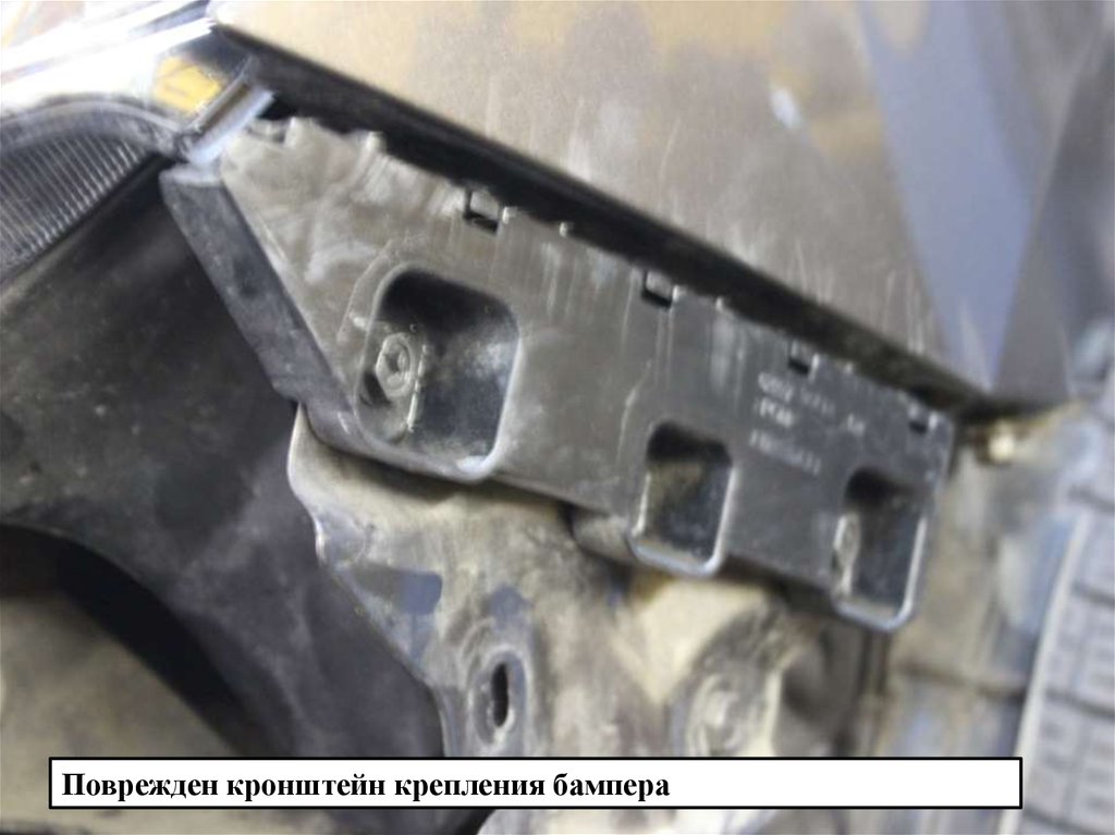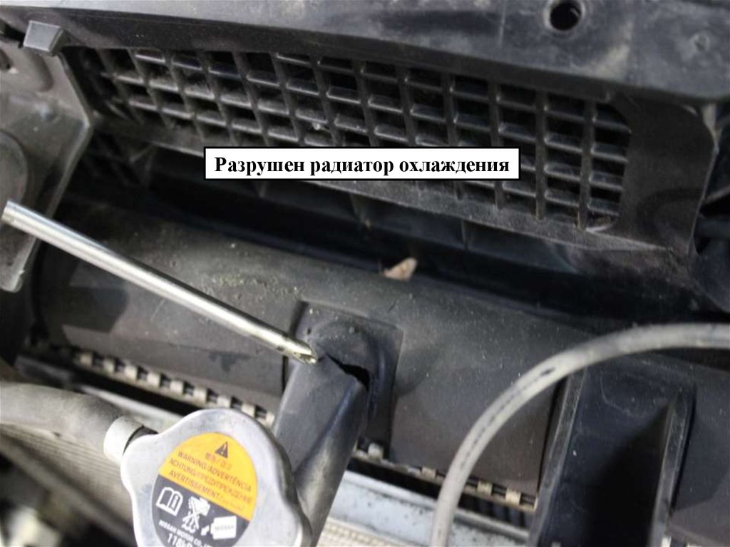 Передний бампер имеет большие разрывы, пострадала решеткарадиатора