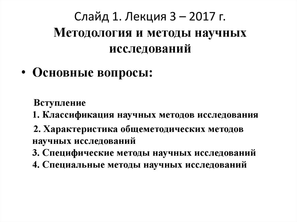 Слайд 1. Лекция 3 – 2017 г.Методология и методы научных