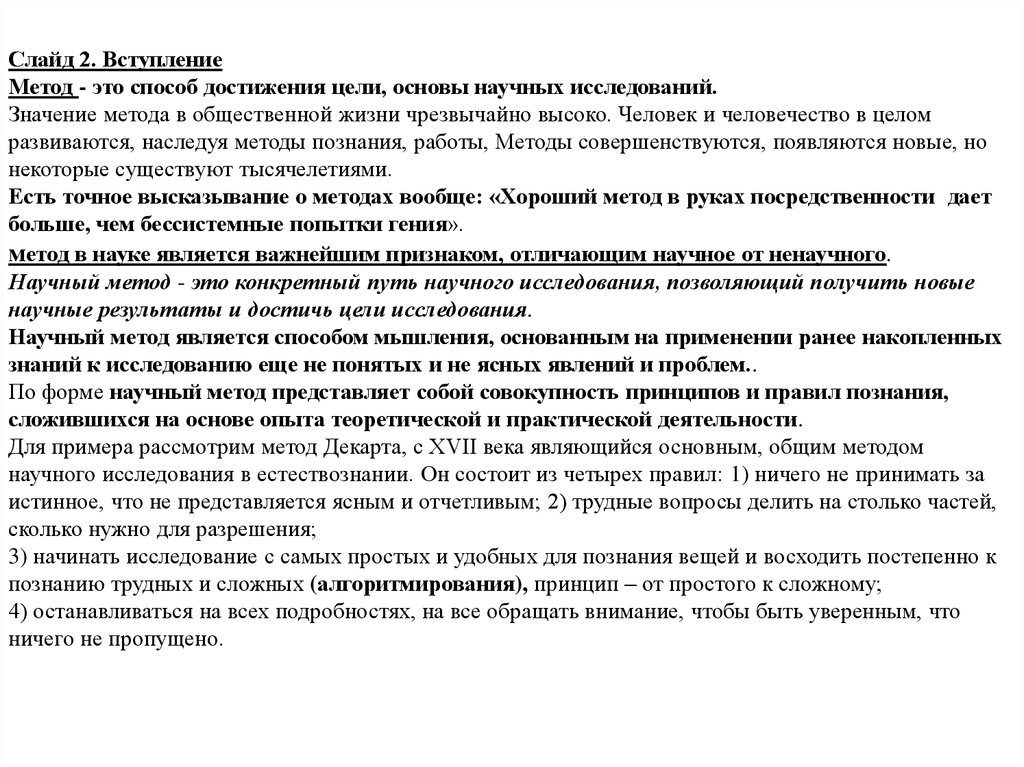 Слайд 2. ВступлениеМетод - это способ достижения цели, основы научных исследований.