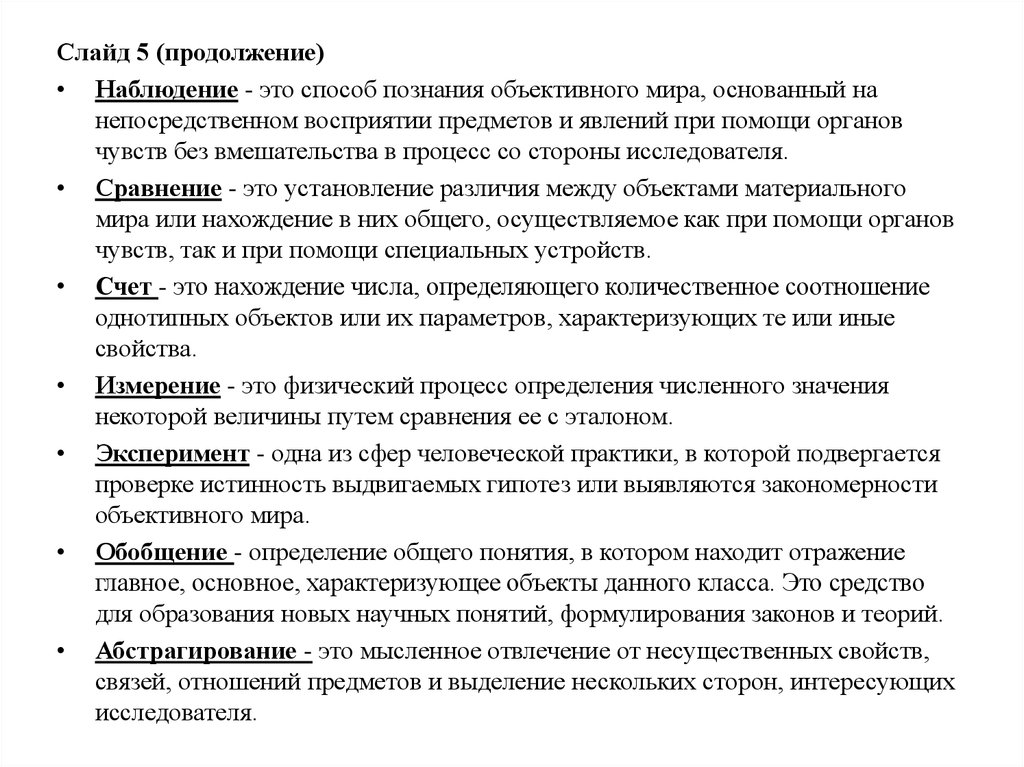 Слайд 5 (продолжение)• Наблюдение - это способ познания объективного мира, основанный на