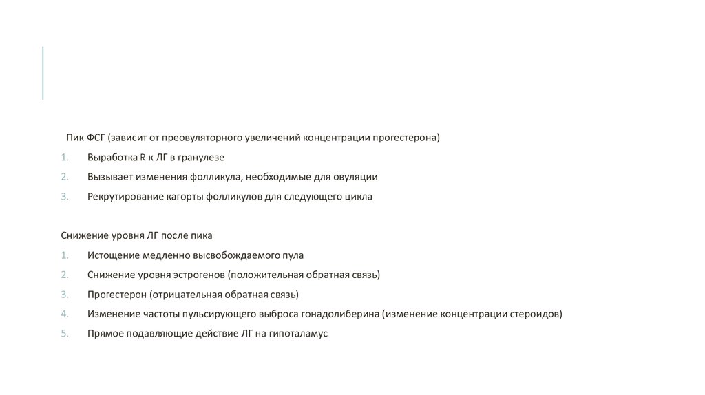 Пик ФСГ (зависит от преовуляторного увеличений концентрации прогестерона)1.