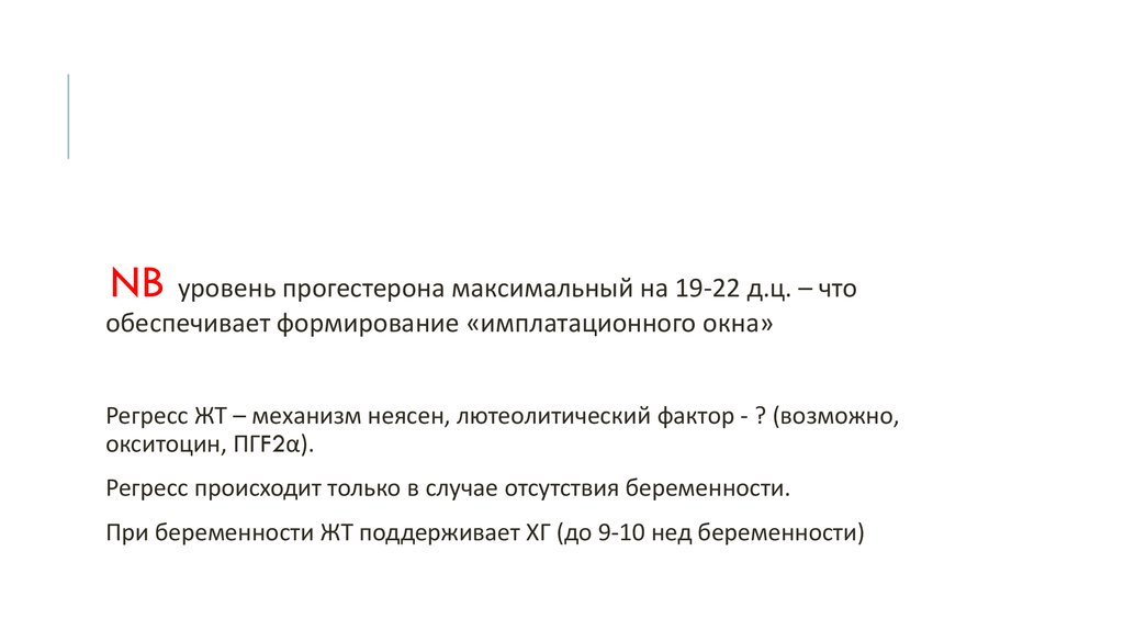 NB уровень прогестерона максимальный на 19-22 д.ц. – чтообеспечивает формирование «имплатационного окна»