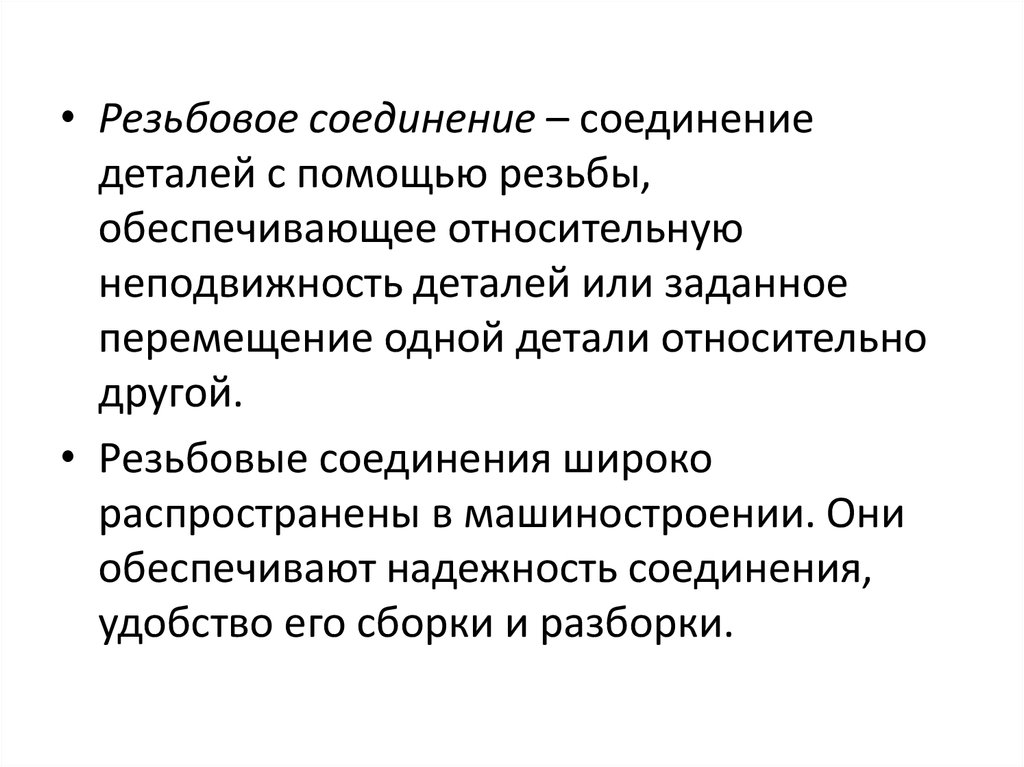 • Резьбовое соединение – соединениедеталей с помощью резьбы,