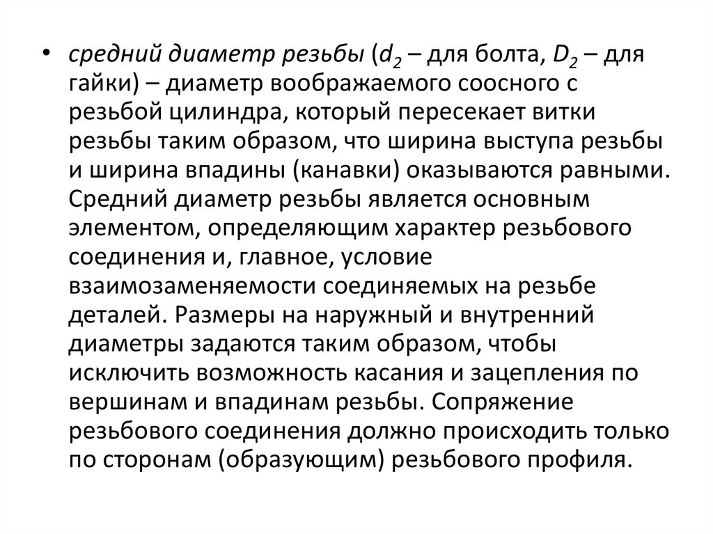 поверхности стержня или отверстия резьбы