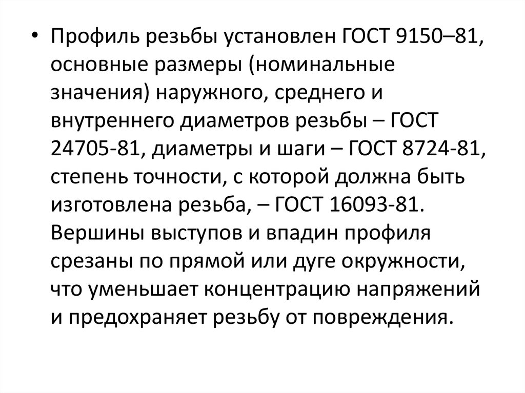 • стандартизованные – резьбы с