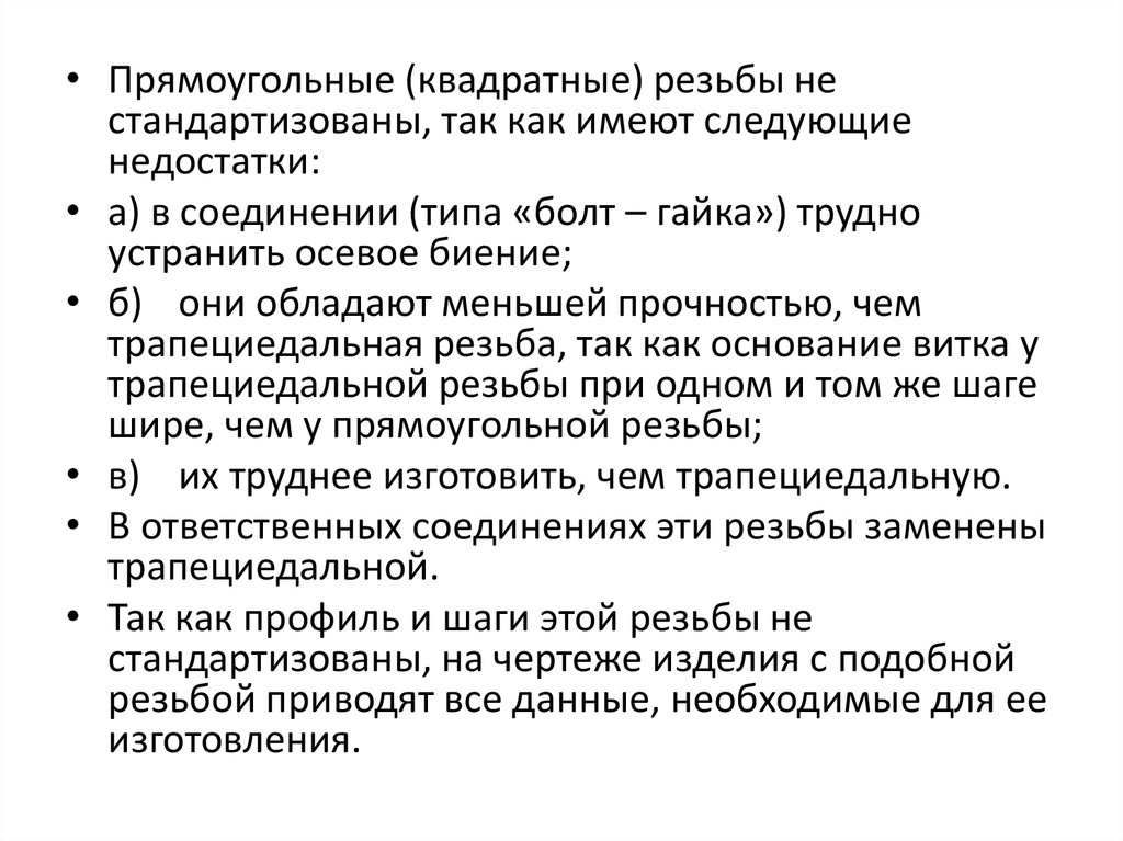 резьбы треугольного, прямоугольного,