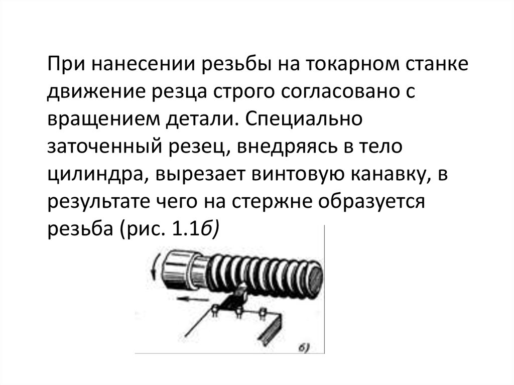 При нанесении резьбы на токарном станкедвижение резца строго согласовано с