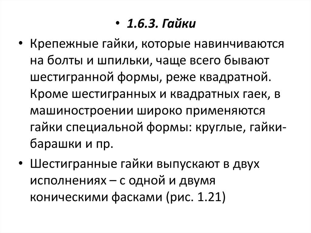 • 1.6.3. Гайки• Крепежные гайки, которые навинчиваются