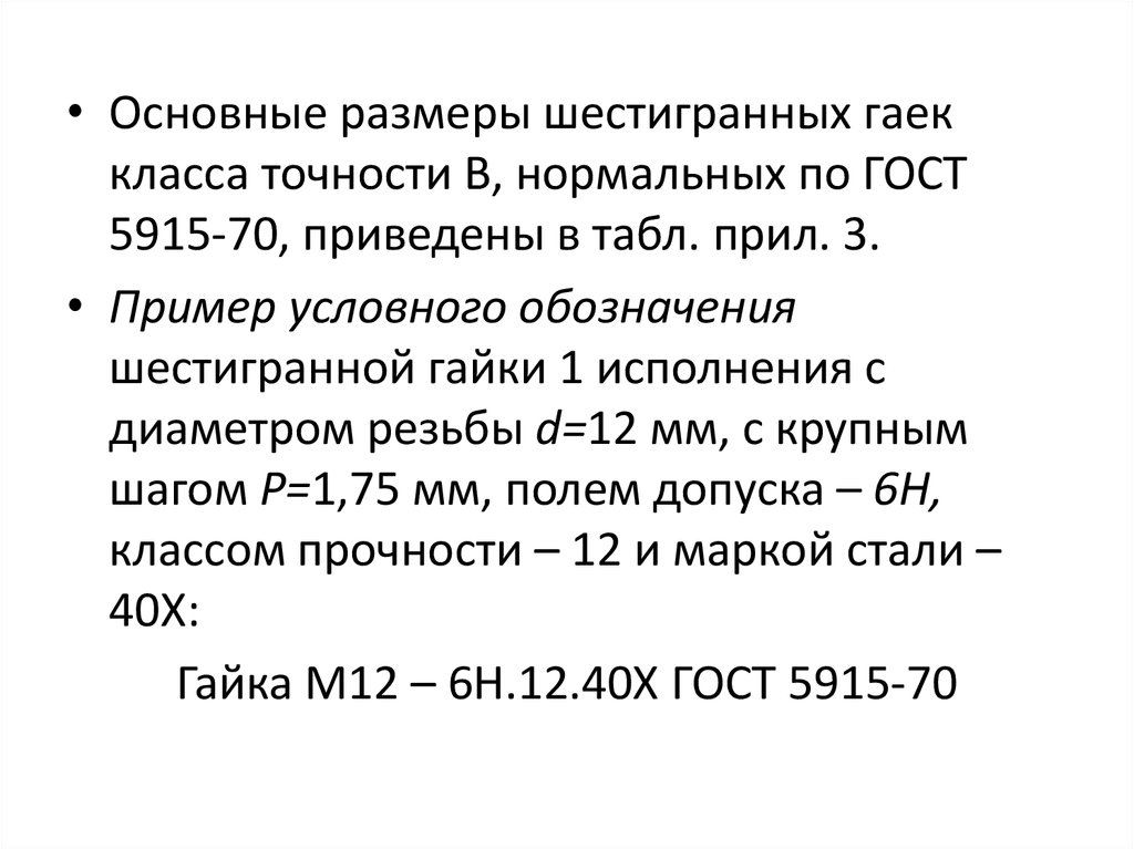• Шестигранные гайки выпускают в двух