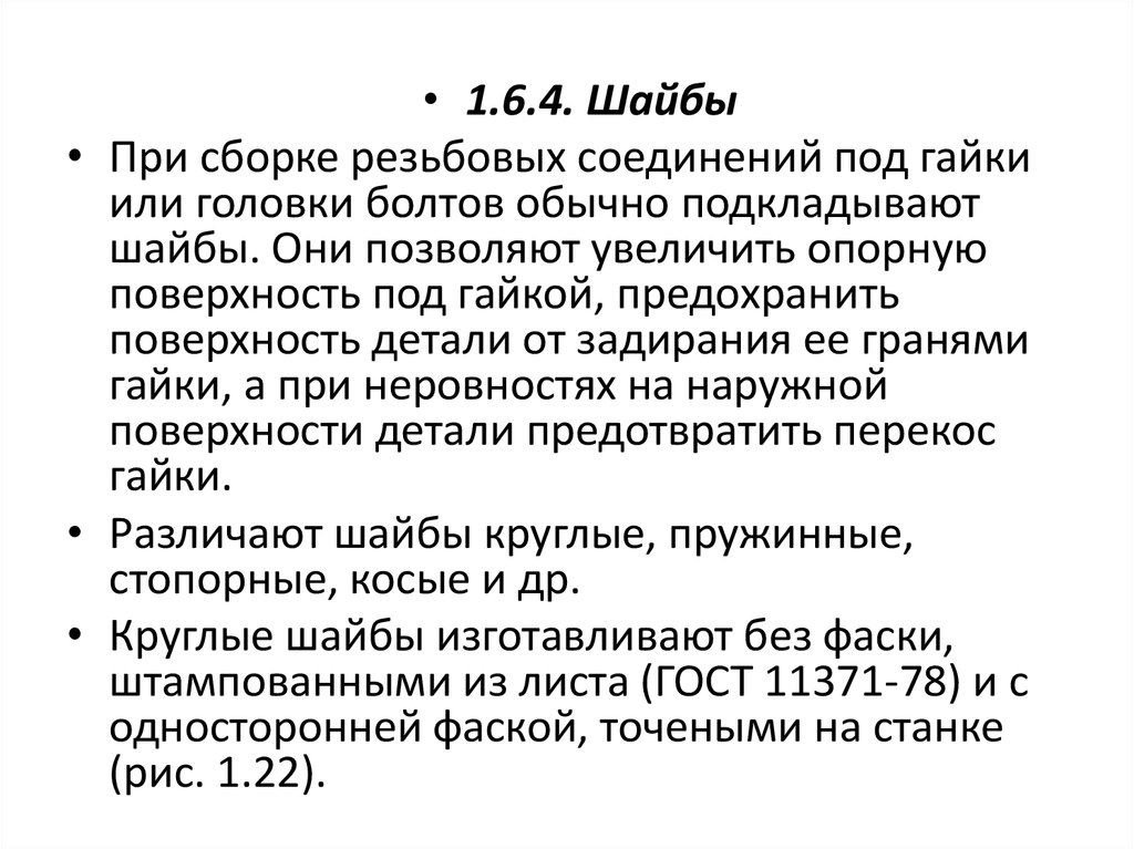 • 1.6.4. Шайбы• При сборке резьбовых соединений под гайки