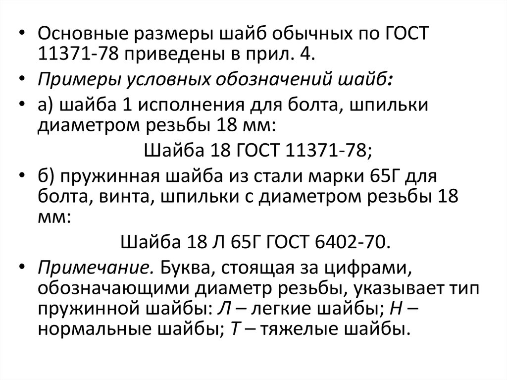 • Основные размеры шайб обычных по ГОСТ11371-78 приведены в прил. 4.