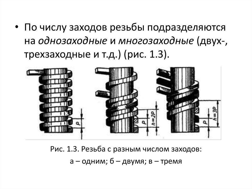 Рис. 1.3. Резьба с разным числом заходов: