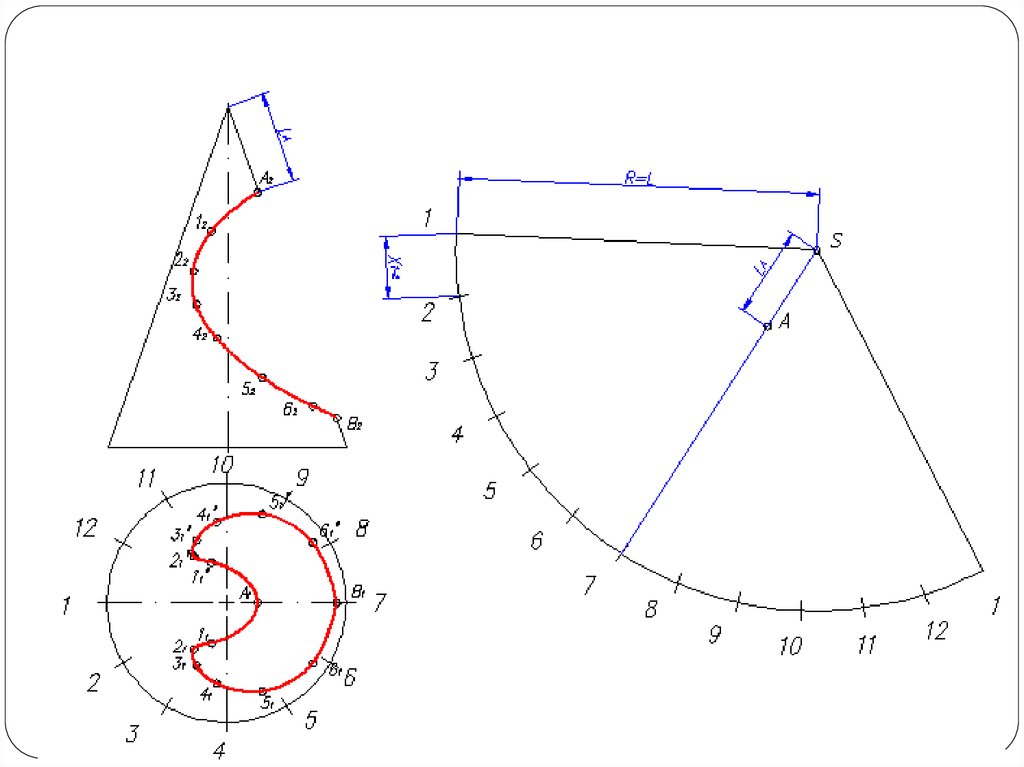 Разверткой называется плоская фигура,полученная совмещением поверхности тела с