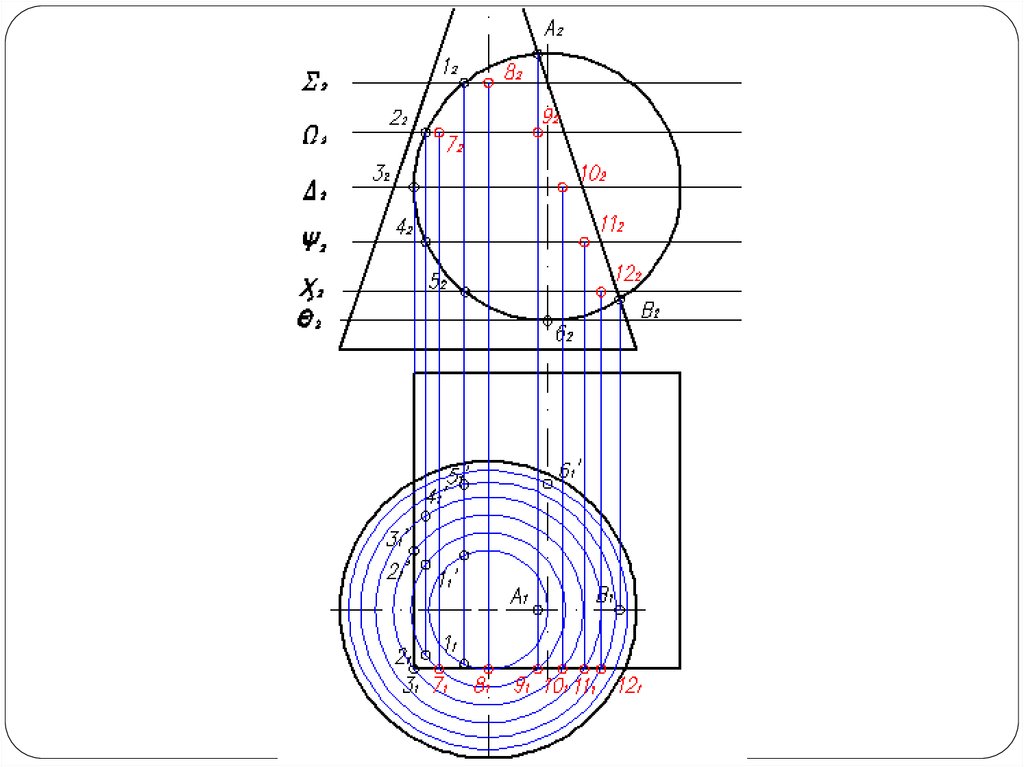 Наиболее общий способ построения линиипересечения двух поверхностей называется