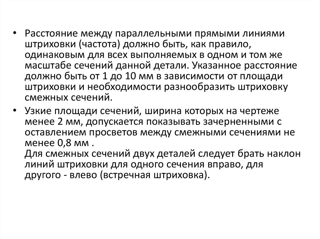 • Pасстояние между паpаллельными пpямыми линиямиштpиховки (частота) должно быть, как пpавило,