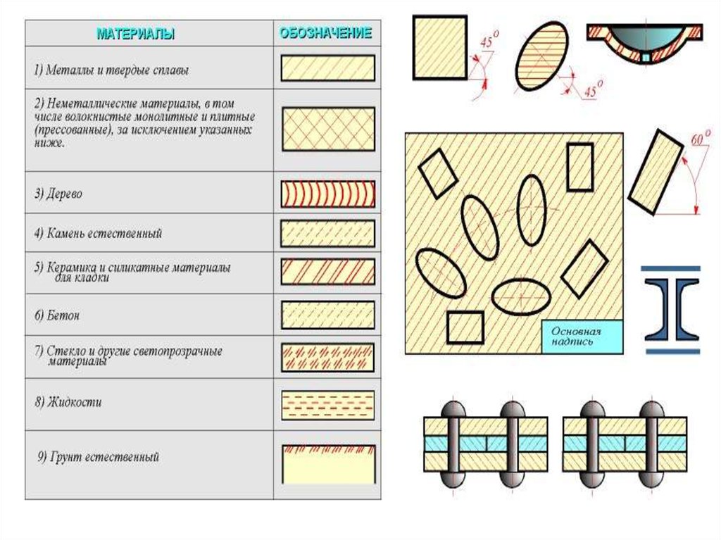 • Hа чеpтеже сечения выделяют штpиховкой.Вид ее зависит от гpафического