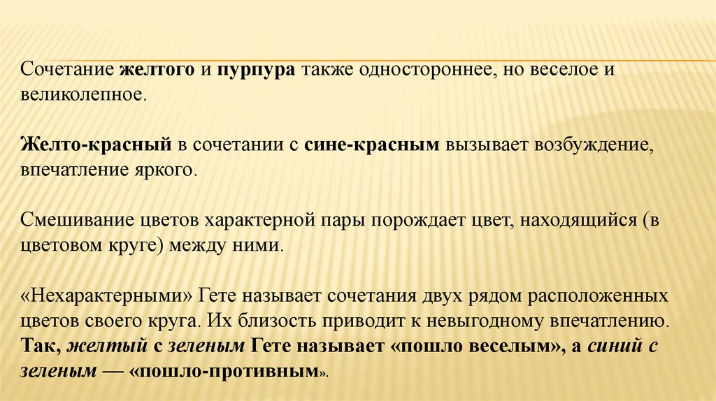 Так, желтый с зеленым Гете называет «пошло веселым», а синий с