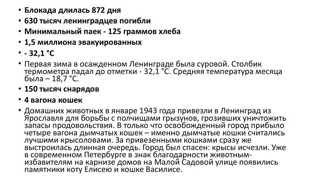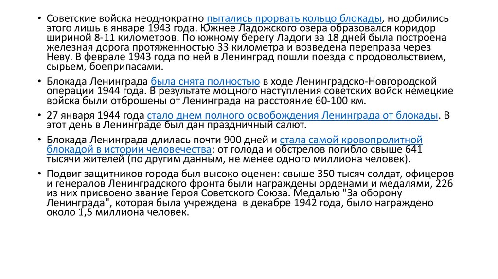 1. Ленинград в годы блокады 8 сентября 1941 — 27 января 1944 872 дня
