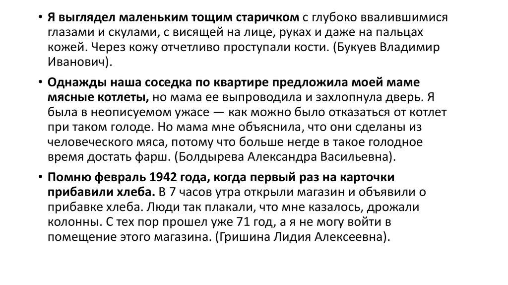 хлебного пайка - рабочим - на 100 граммов, остальным - на 75, истощенные, изможденные