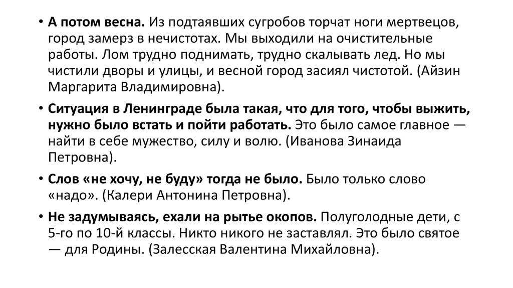 • Ситуация в Ленинграде была такая, что для того, чтобы выжить,