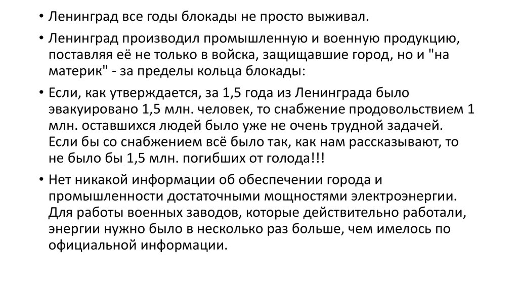 • Ленинград все годы блокады не просто выживал.• Ленинград производил промышленную и военную продукцию,