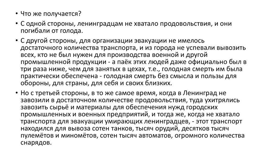 • Что же получается?• С одной стороны, ленинградцам не хватало продовольствия, и они