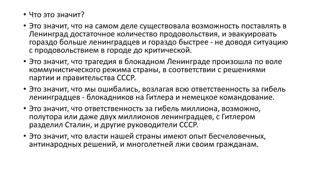 • Это значит, что трагедия в блокадном Ленинграде произошла по воле