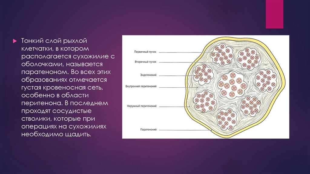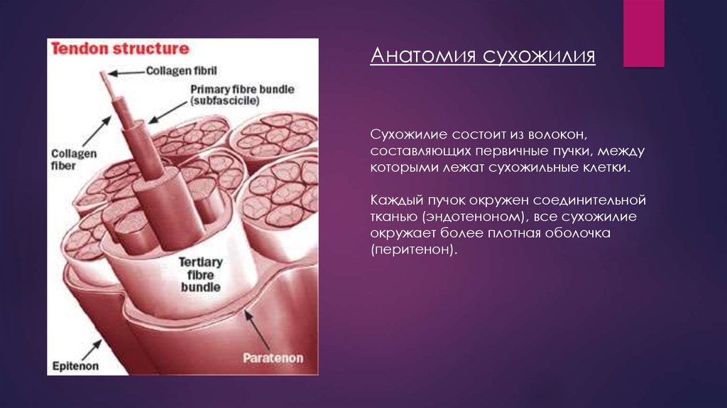 соединительнотканные оболочки (эндотеноний, перитеноний, паратеноний) и располагаются параллельно