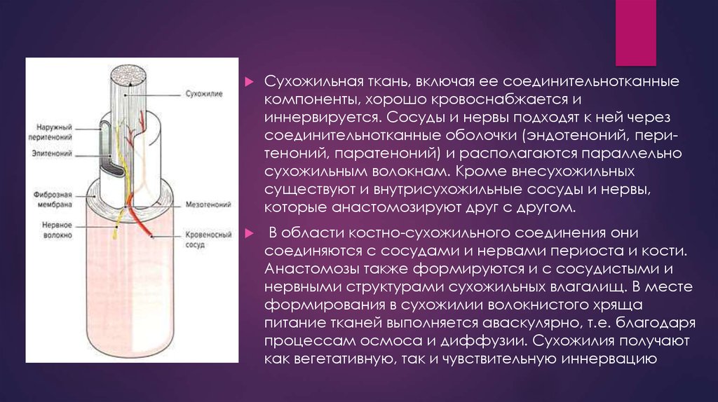Сухожильная ткань, включая ее соединительнотканныекомпоненты, хорошо кровоснабжается и