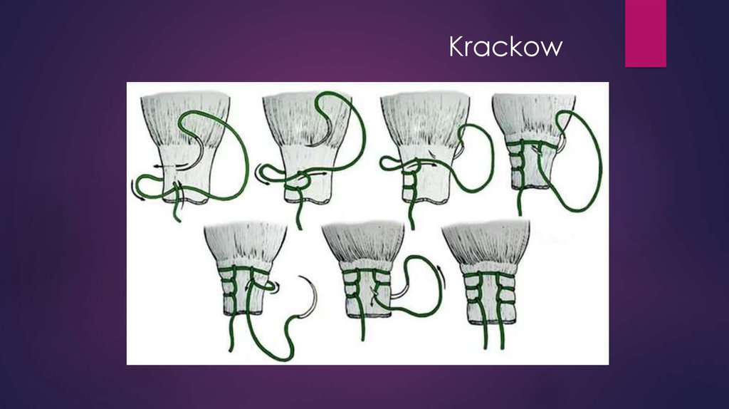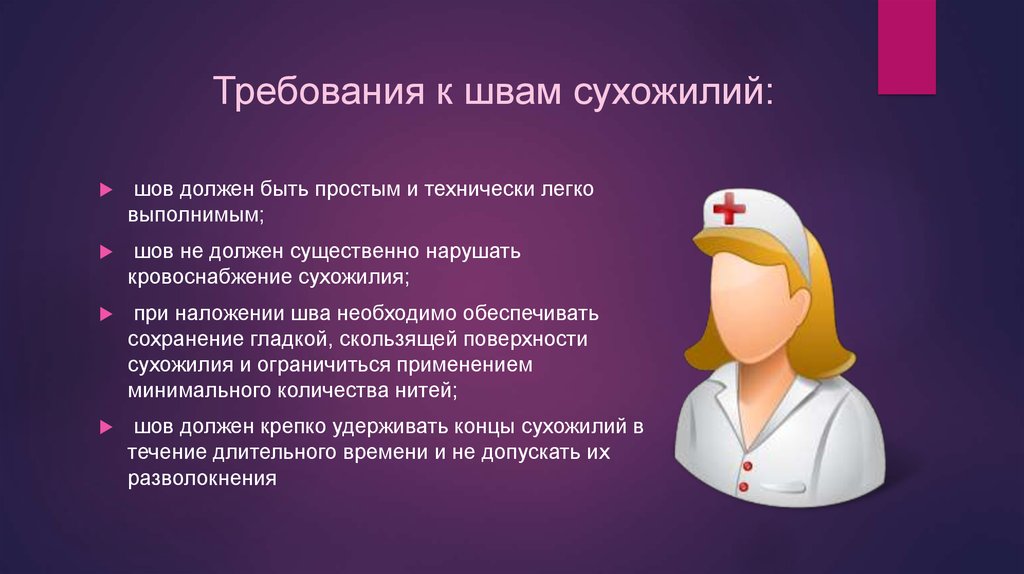 Требования к швам сухожилий:шов должен быть простым и технически легко