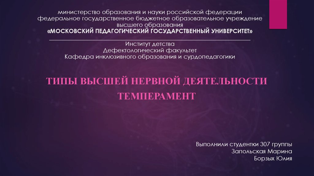 ТИПЫ ВЫСШЕЙ НЕРВНОЙ ДЕЯТЕЛЬНОСТИ