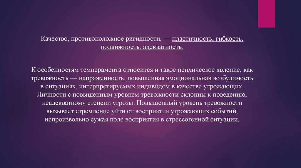 25. Среди качеств темперамента особо выделяются также ригидность и пластичность.