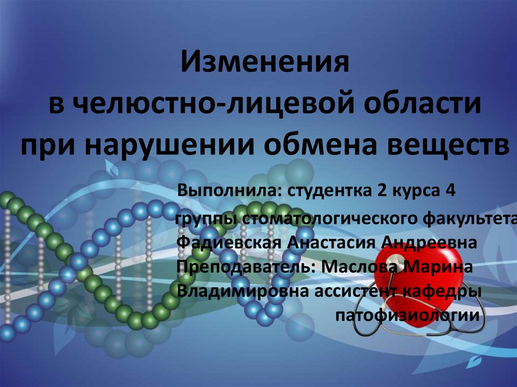 Изменения в челюстно-лицевой области при нарушении обмена веществ