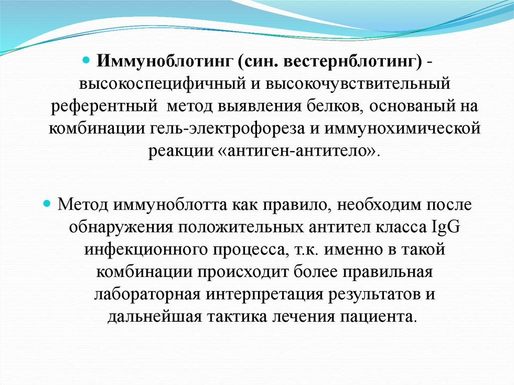 Вестерн-блот: Это надежный подтверждающийметод, исключает ложноположительные ответы и