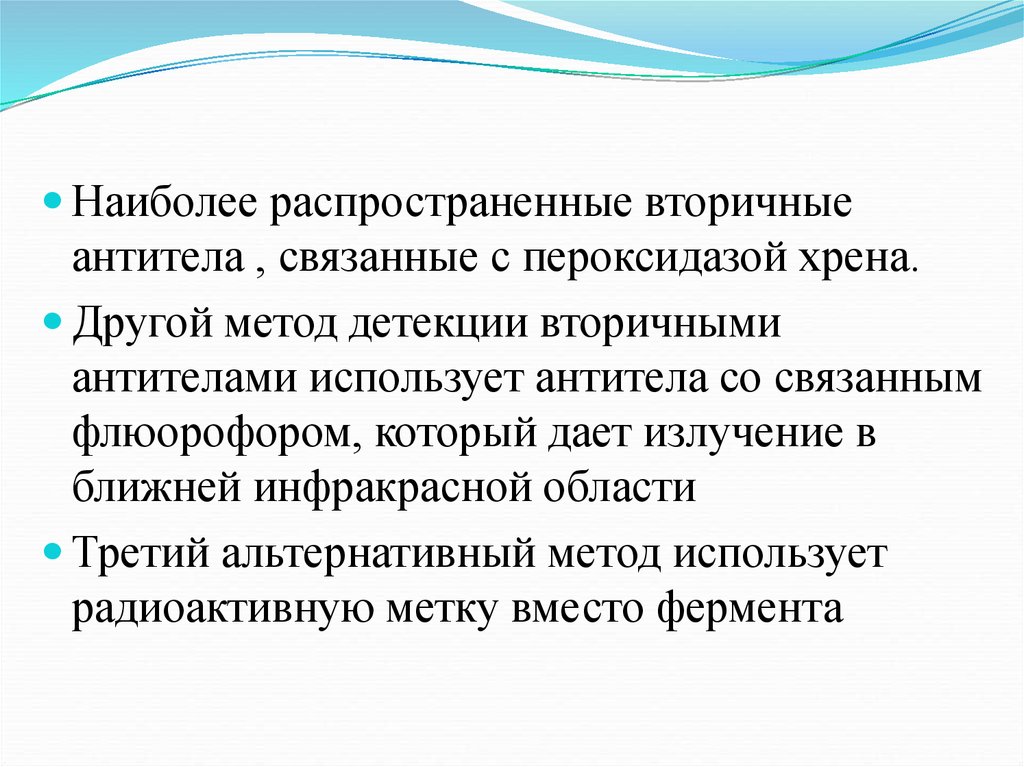 Наиболее распространенные вторичныеантитела , связанные с пероксидазой хрена.